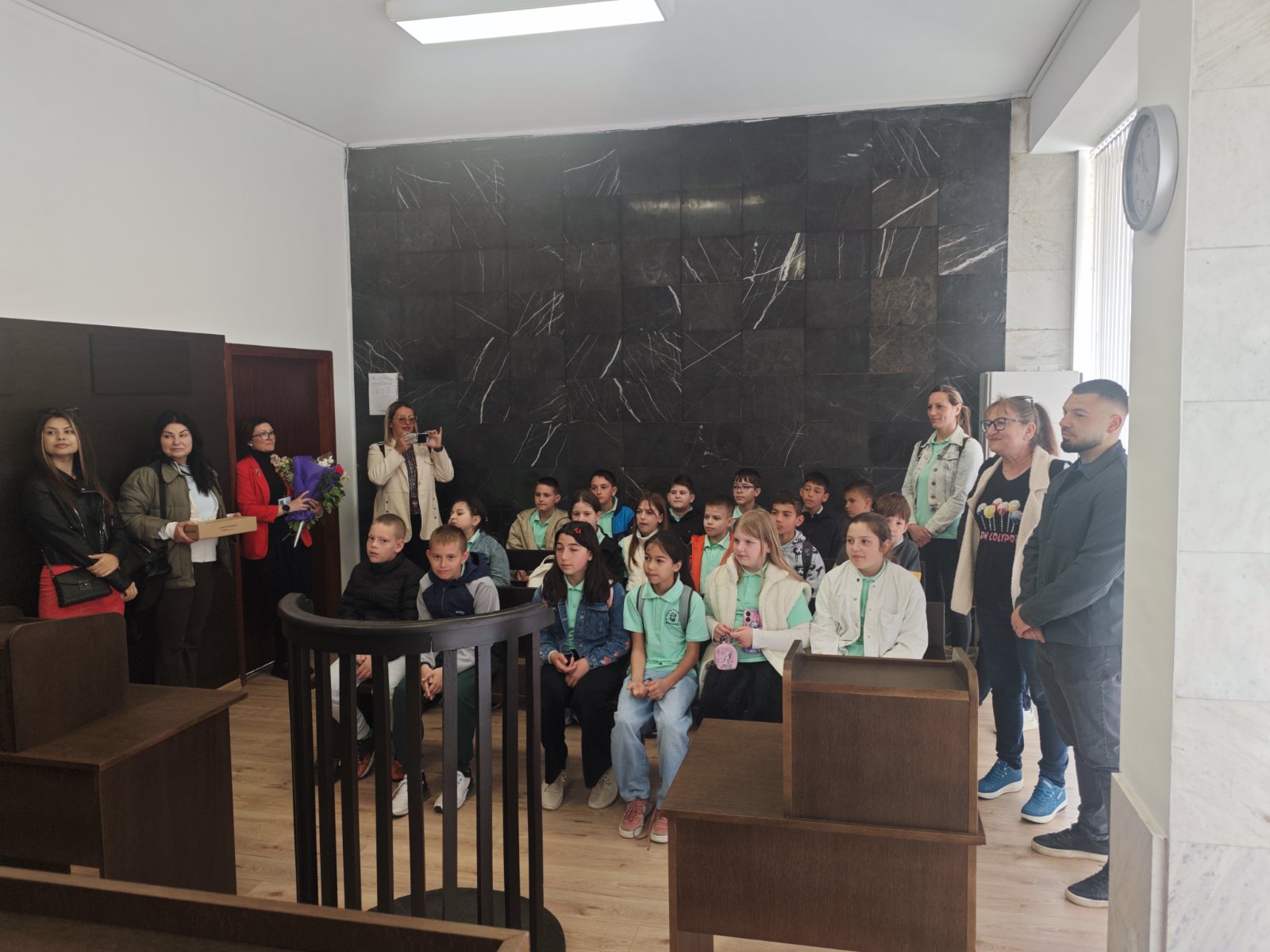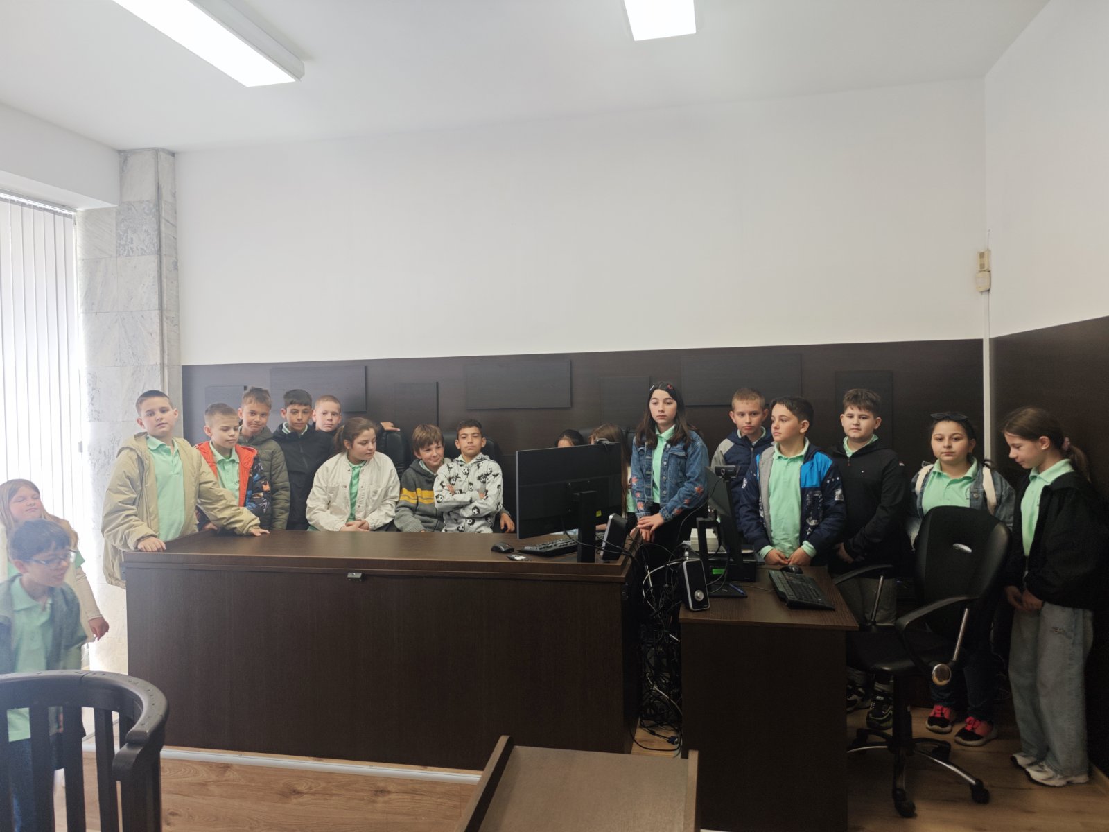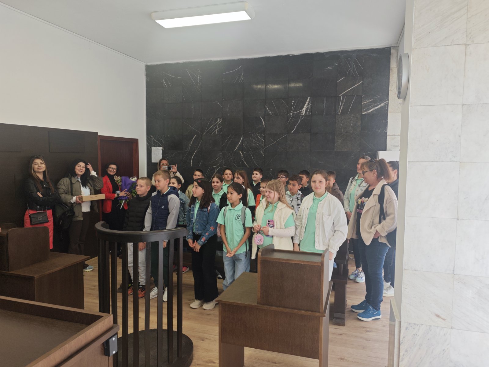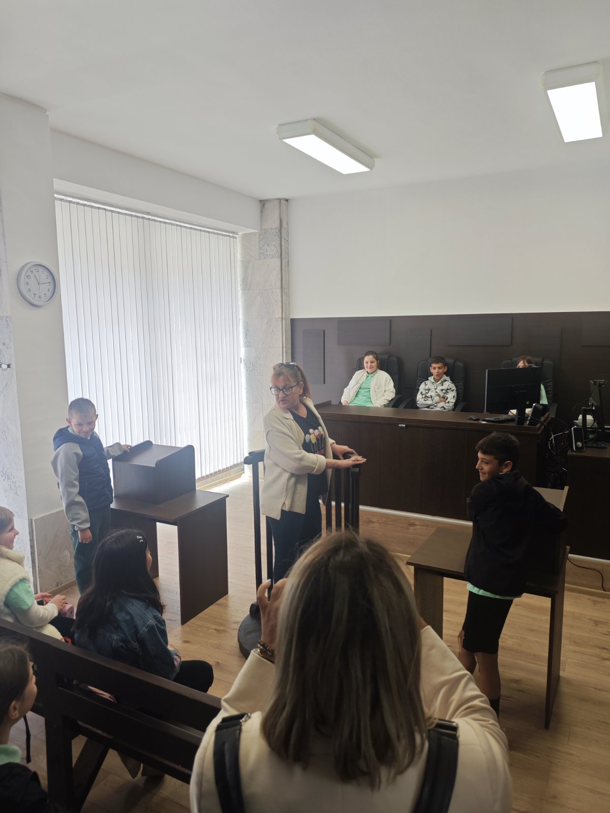 РС Димитровград с удоволствие съобщава, че на 24.04.2026г. деца от 4а клас на ОУ "П.Славейков" посетиха и разгледаха съдебните зали на съда, както и кабинета на председателя на РС Димитровград. Същият заедно с административния ръководител посрещнаха учениците на входа на съдебната палата, след което ги запознаха с функциите на съдията, прокурора и адвоката. Децата си направиха снимки за спомен от посещението в съдебната зала и кабинета на председателя на съда.
