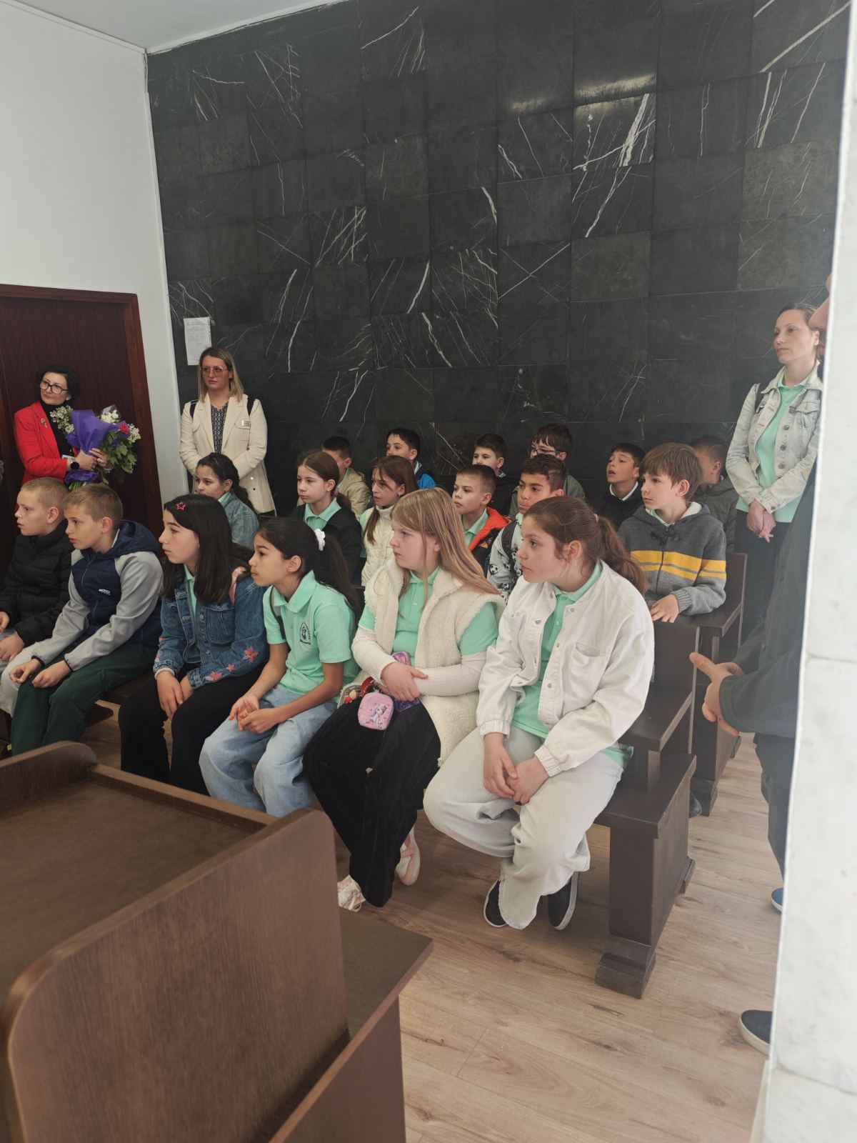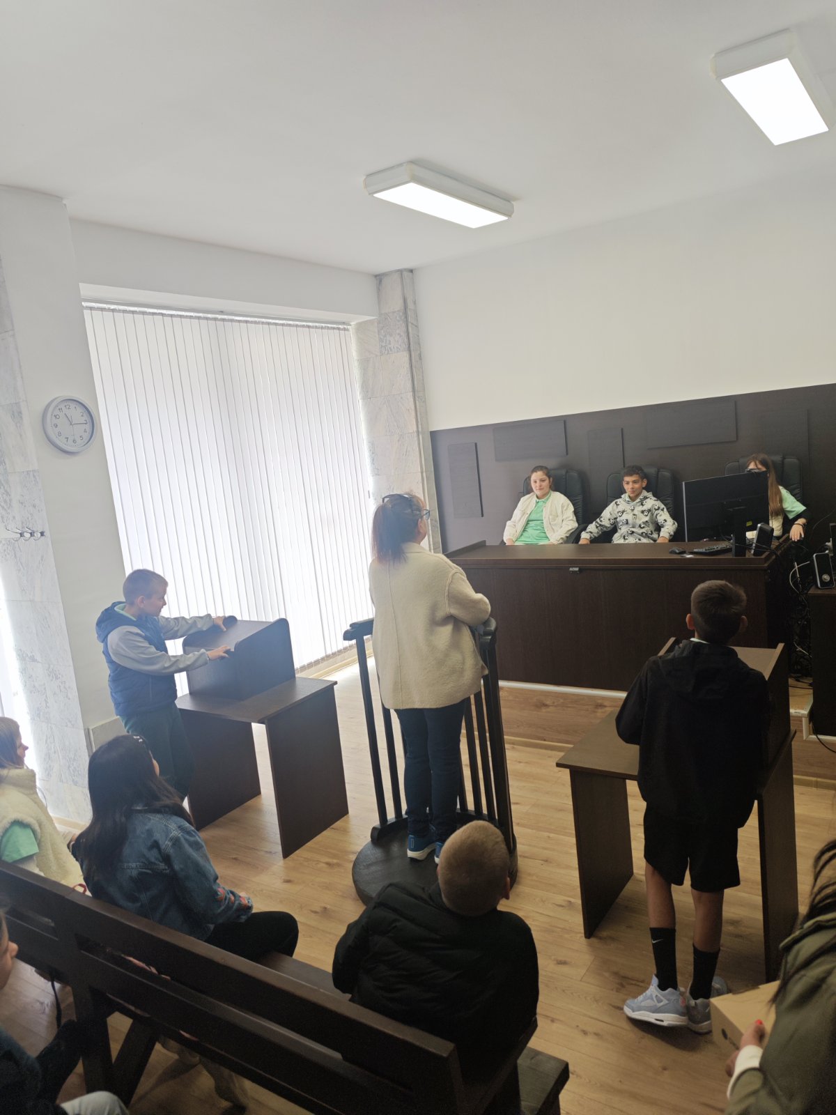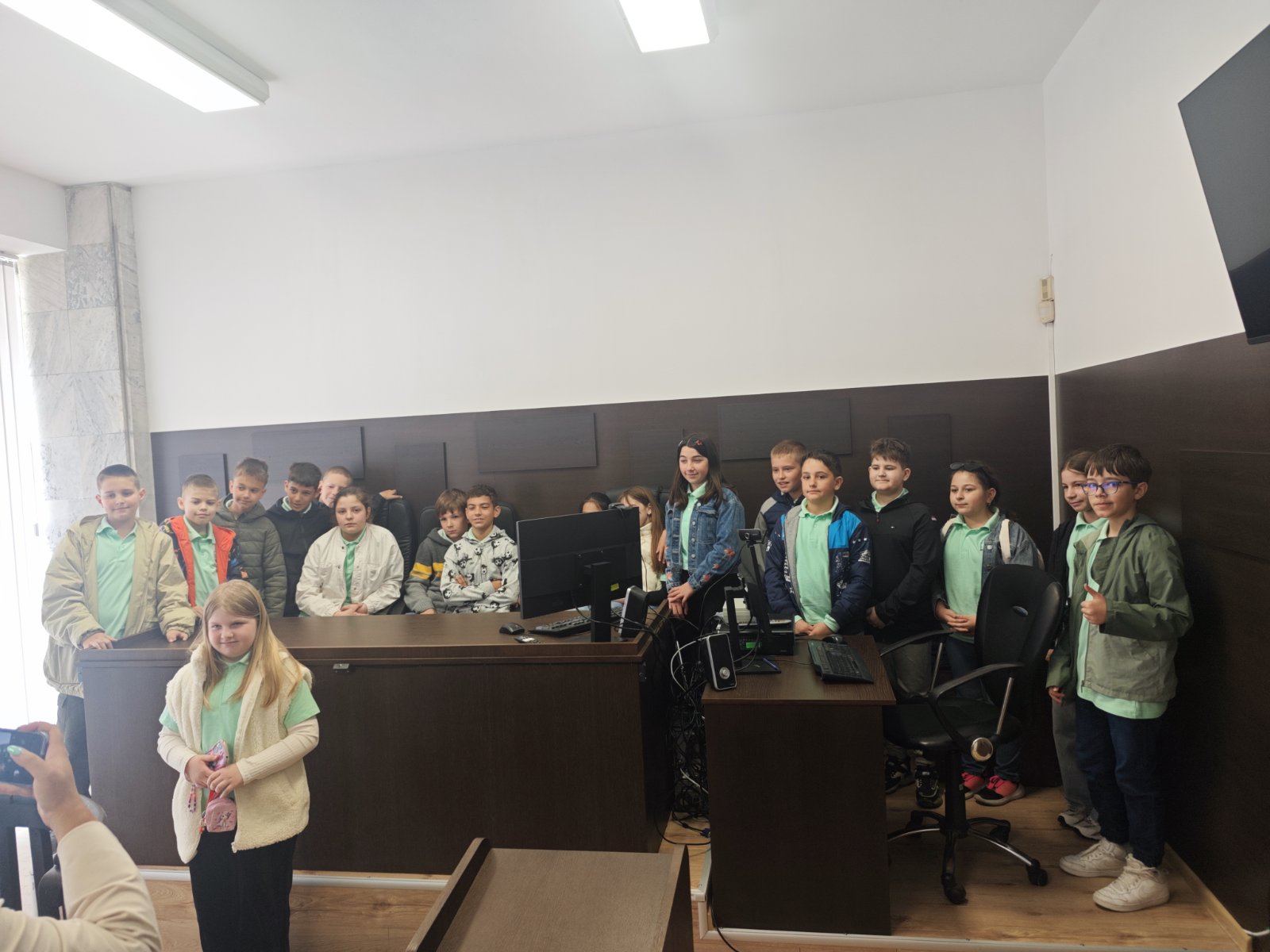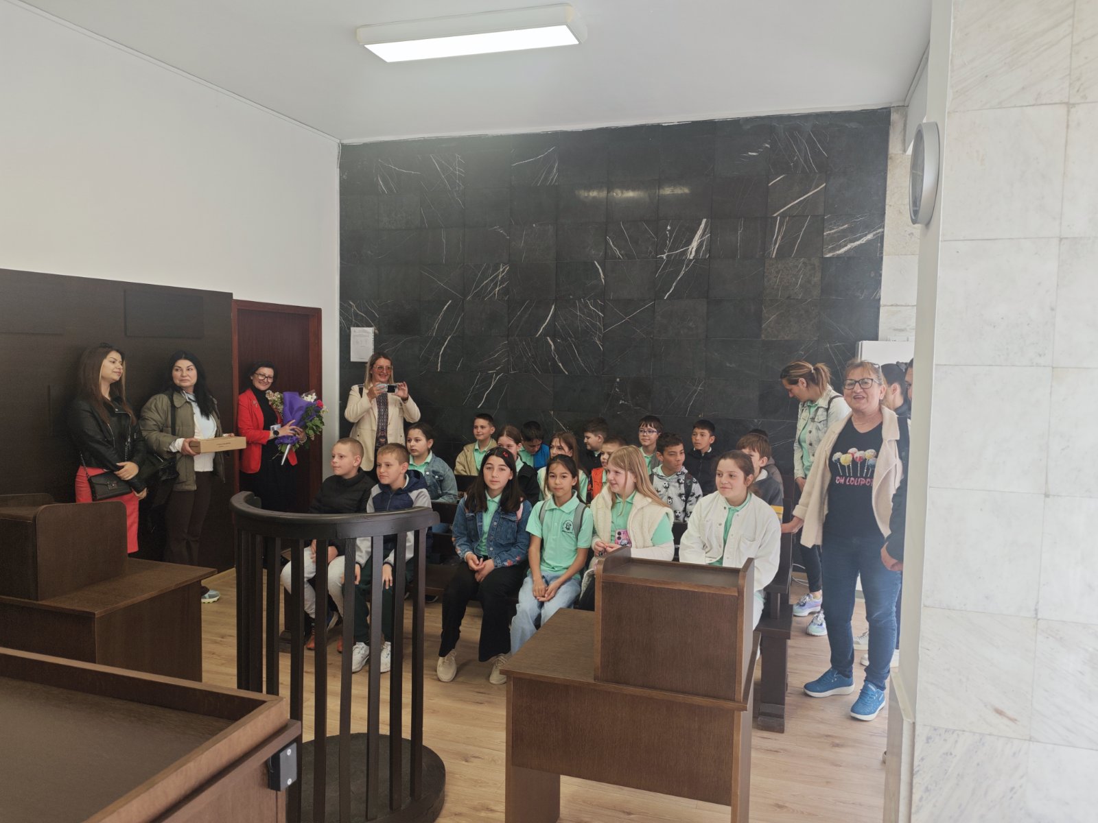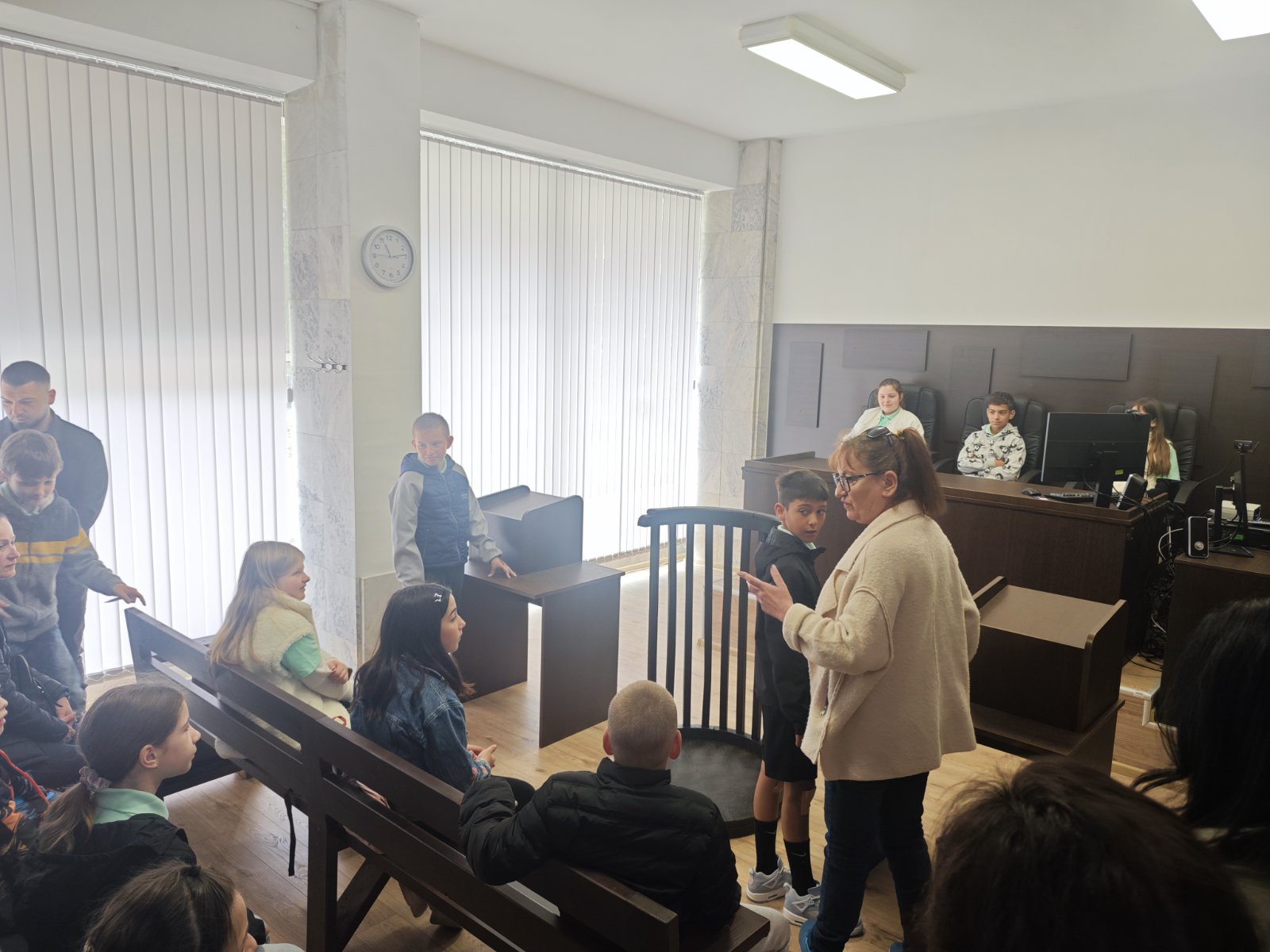 РС Димитровград с удоволствие съобщава, че на 24.04.2026г. деца от 4а клас на ОУ "П.Славейков" посетиха и разгледаха съдебните зали на съда, както и кабинета на председателя на РС Димитровград. Същият заедно с административния ръководител посрещнаха учениците на входа на съдебната палата, след което ги запознаха с функциите на съдията, прокурора и адвоката. Децата си направиха снимки за спомен от посещението в съдебната зала и кабинета на председателя на съда.
